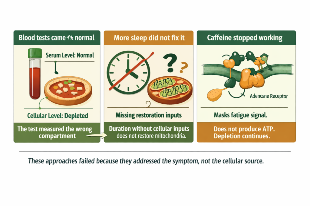 Before the mechanism, this section matters. Most people with persistent fatigue have already tried the obvious approaches. Here is why each one fell short.